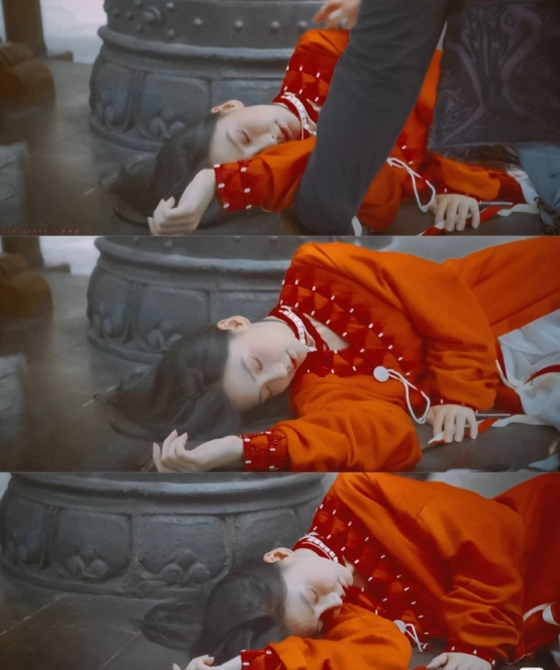 她眉毛上的颜料和脸上的鲜血一起被擦拭干净,春山般的弯眉颜色自然的浓淡。